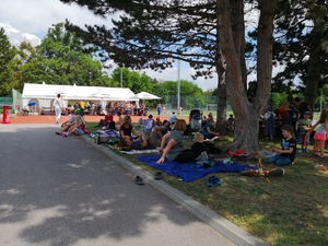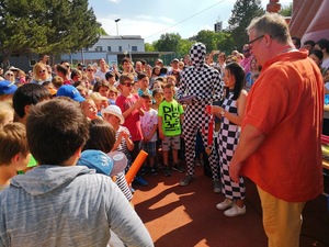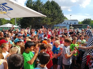 wobei auch Zeit blieb um sich bei den unterschiedlichsten Freizeitspielen sportlich zu betätigen, oder sich auf der Piratenschiffhüpfburg auszutoben. Bei Musik und strahlendem Sonnenschein wurde gegrillt und so manche Kinder, Eltern und SchachlehrerInnen testeten Ihr Können beim Simultan gegen den Wiener Youngstar Andrija Guskic. Bei der Grillstation konnten die Gäste wohlverdiente Stärkungen und Erfrischungen genießen und sich schließlich nebenan beim RWS-Verkaufsstand zu Spiel- und Trainingsmaterial beraten lassen.