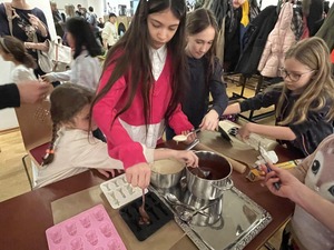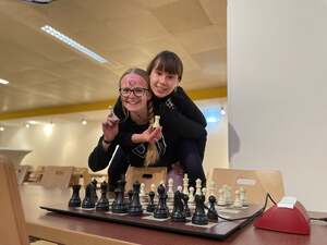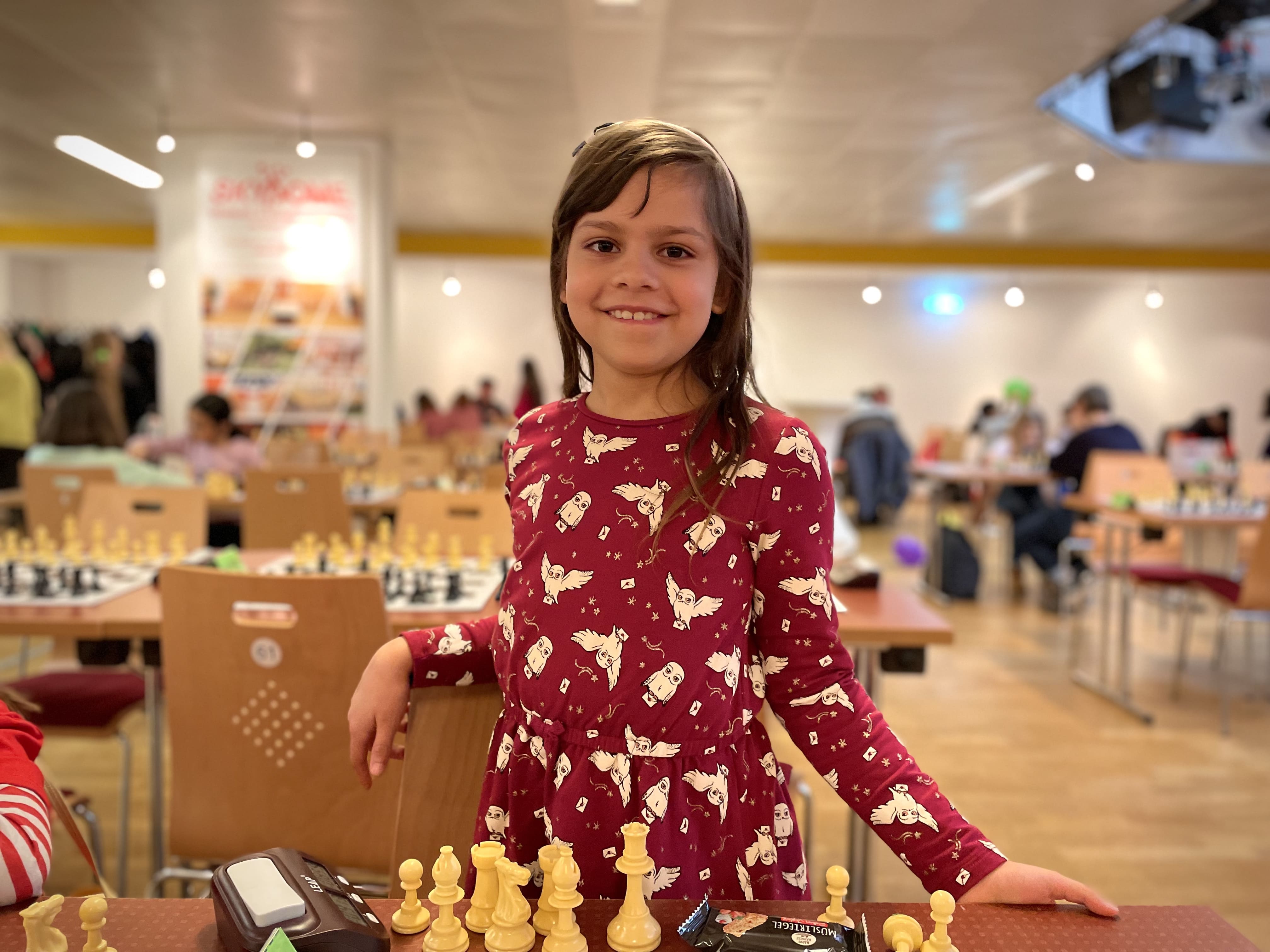 Nach Tradition führten wir unser bezauberndes Rahmenprogramm in voller Breite weiter – es gab Schokofiguren zum Gießen, Kekse zum Ausstechen & Verzieren, Riesenschach, Origami und Kratzbilder. Wer wollte, durfte sich von Selina oder Chesswoman Eli schminken lassen. Das einladene Buffet umsorgte unsere bezaubernde Sophie. Ebenso gab es in der Mittagspause Programm: Emilia und Sara tanzten mit den Mädchen zu „Schlaue Mädchen spielen Schach“ von Monika Schmatz. Ein Riesenspaß für alle Teilnehmerinnen und Helferinnen.